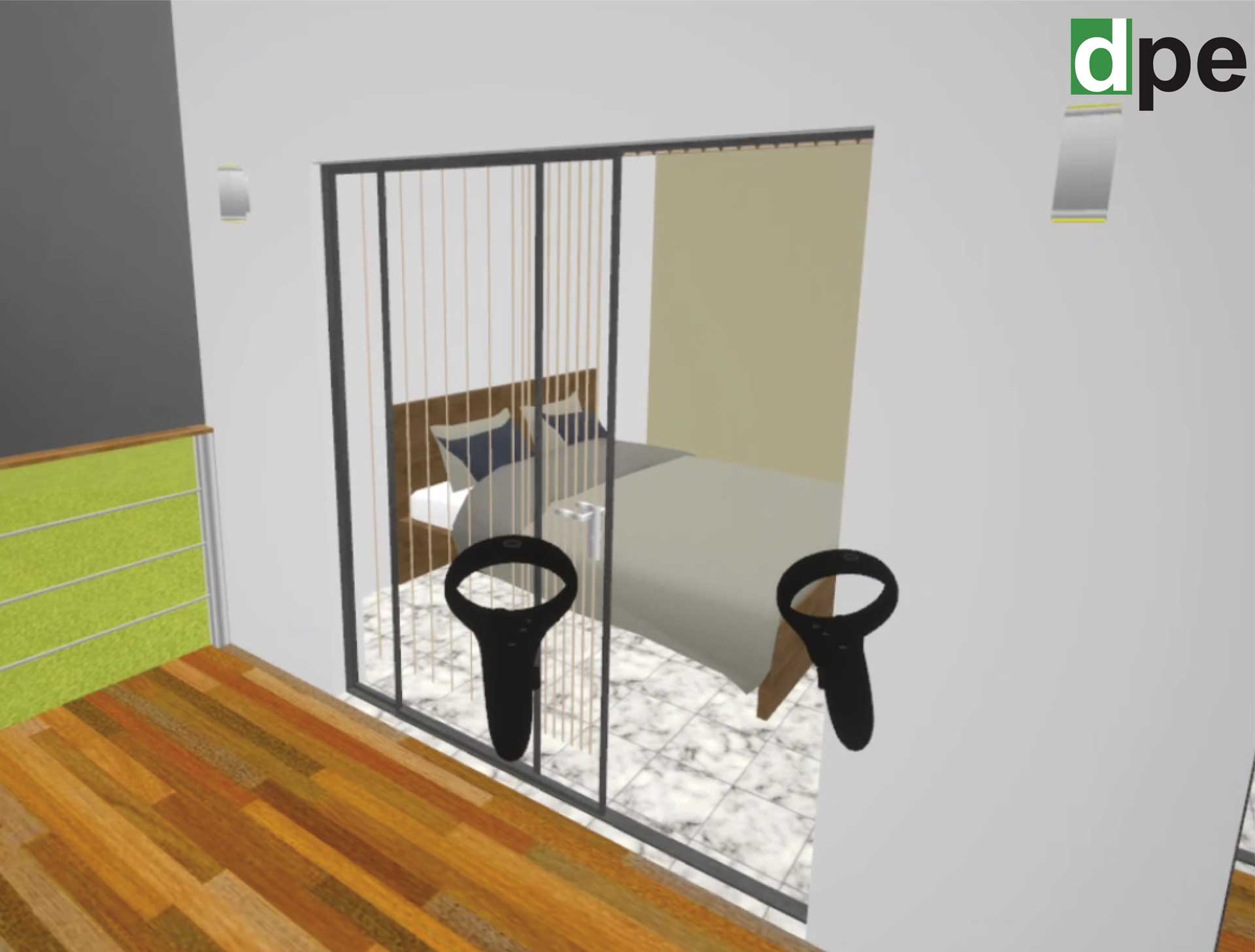 Este modelo inmersivo es recorrido en unas gafas especializadas en realidad virtual, por medio de una aplicación que permite caminar y observar todo el proyecto de una forma sencilla, mediante los controles fisicos de las gafas puede manipular con sus propias manos puede avanzar en el proyecto a la misma vez que las gafas tendran una panoramica 360° de todo el proyecto. La aplicación permite la interactividad, por lo tanto puede abrir/cerrar puertas y ventanas, cambiar colores/materiales del proyecto, medir áreas internas/externas.